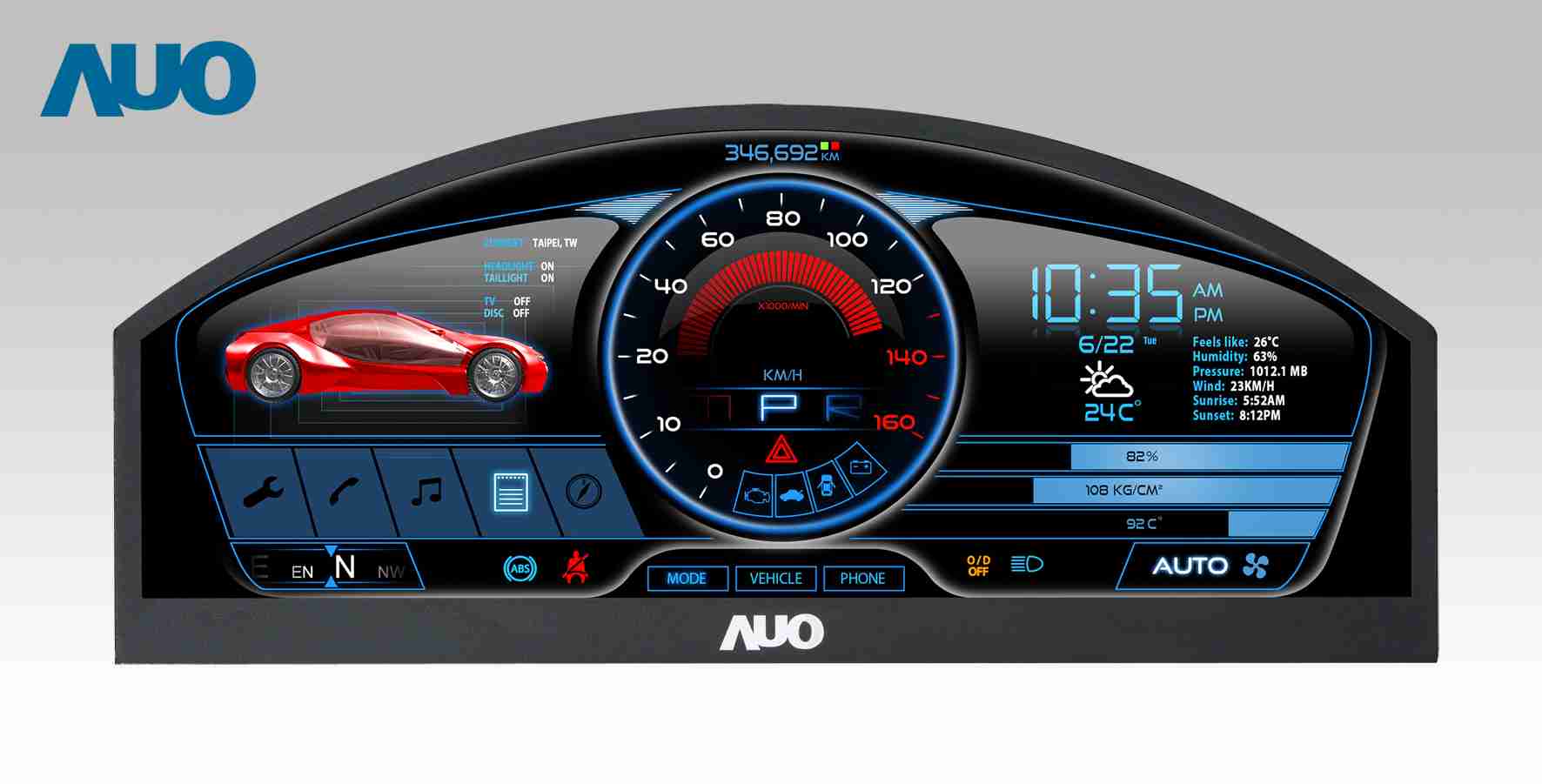 欧陆注册 12.3吋超高解析异型切割车用面板,,,,拥有流线外观及精细画质